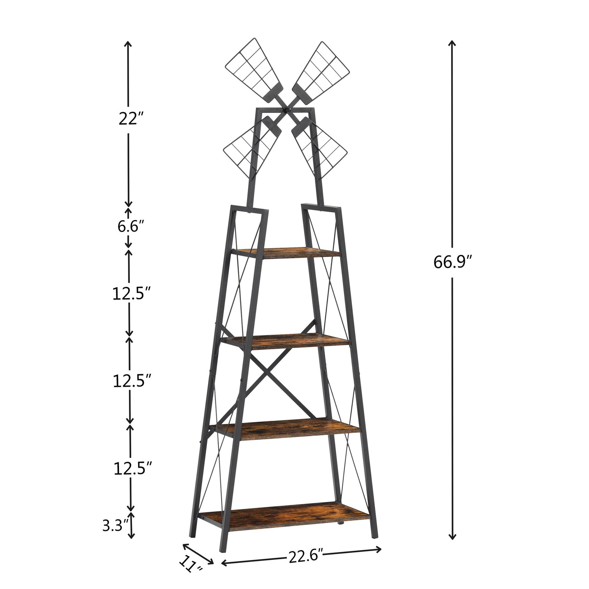 Display and Aesthetic Appeal: Acting as a decorative element in any room, the bookshelf can be used in arranging books or other collections in an aesthetically pleasing manner, creating a visually appealing focal point.The windmill shape design adds a childlike toch to your room.