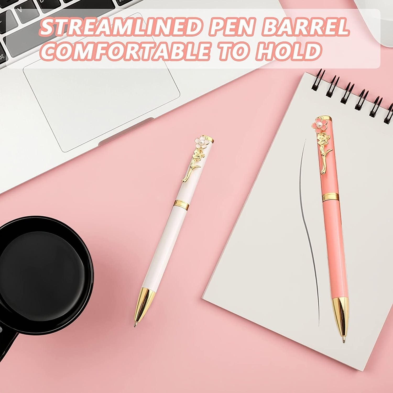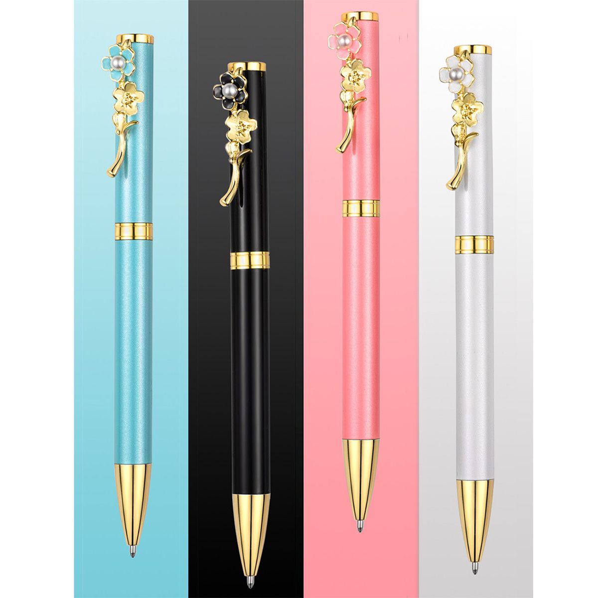 4pcs Ballpoint Pens,Fine Point Smooth Writing Pens,Metal Twist Pretty Pens For Journaling, 1.0 Mm Medium Point Black Ink Cute Pens,Office Supplies Fancy Pen Sets For Women&Men Gift