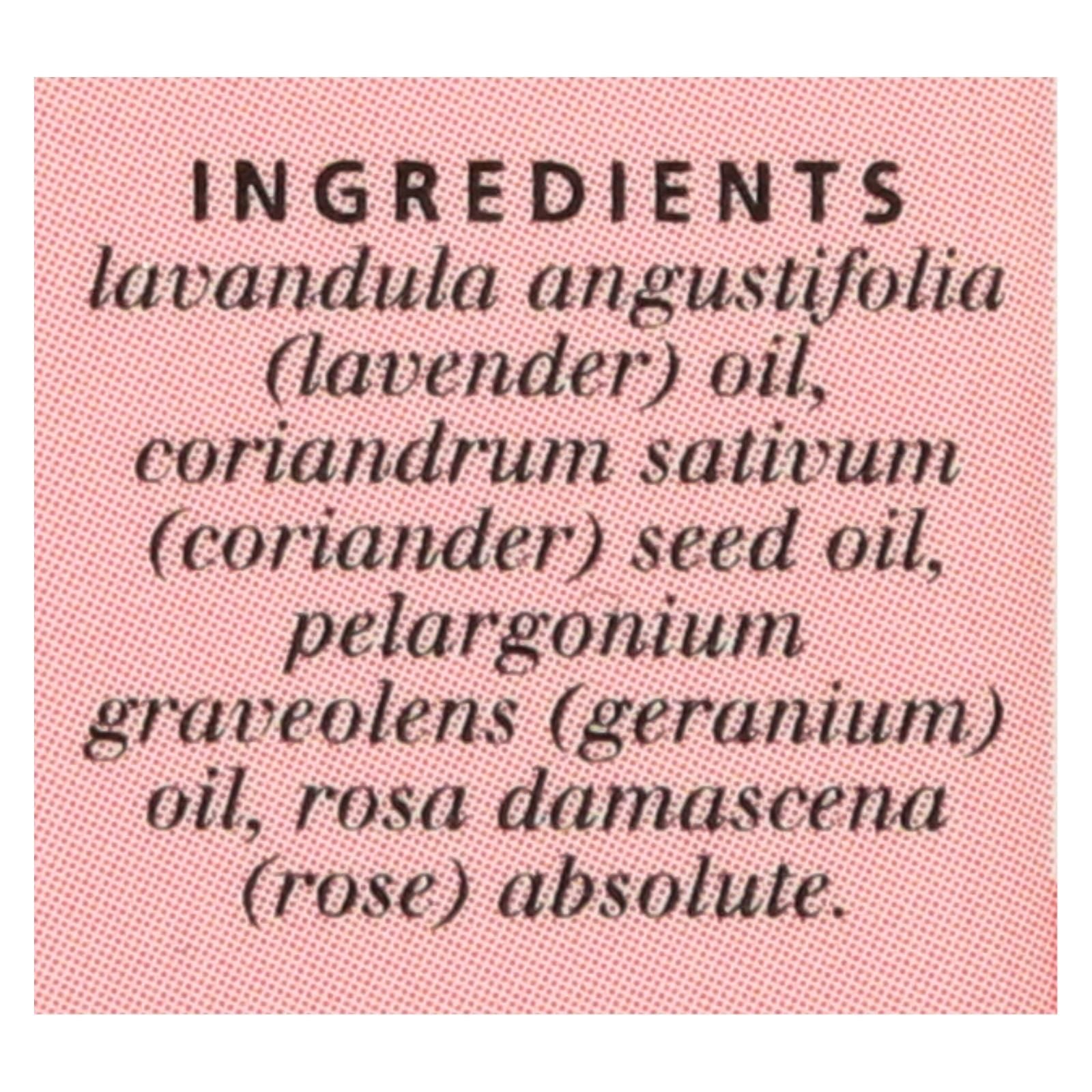 ingredients : lavandula angustifolia;lavender;oil;coriandrum sativum;coriander;seed oil;pelargonium graveolens;geranium;rosa damascena;rose;absolute