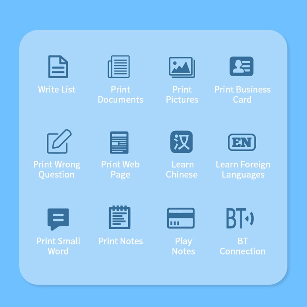 The "Bluetooth-Compatible Mini Thermal Printer" you described is a portable and versatile printing device that utilizes thermal printing technology. Here are the key features and details about this printer:200dpi High-Resolution Printing: The printer features a 200 dots per inch (dpi) high-resolution print head. This results in clear and sharp printing output, making it suitable for various printing tasks.Wireless and Bluetooth-Compatible: The printer is equipped with Bluetooth connectivity, allowing it to connect wirelessly to compatible devices like smartphones or tablets. This wireless feature provides convenience and flexibility in printing.Portable and Compact: The printer's compact size and portability make it easy to carry and use on the go. It's suitable for situations where you need to print while traveling, at events, or in the field.Versatile Printing Functions: This thermal printer supports a variety of functions, including the ability to print photos, labels, messages, lists, QR codes, web pages, and more. This versatility makes it a useful tool for both personal and professional use.