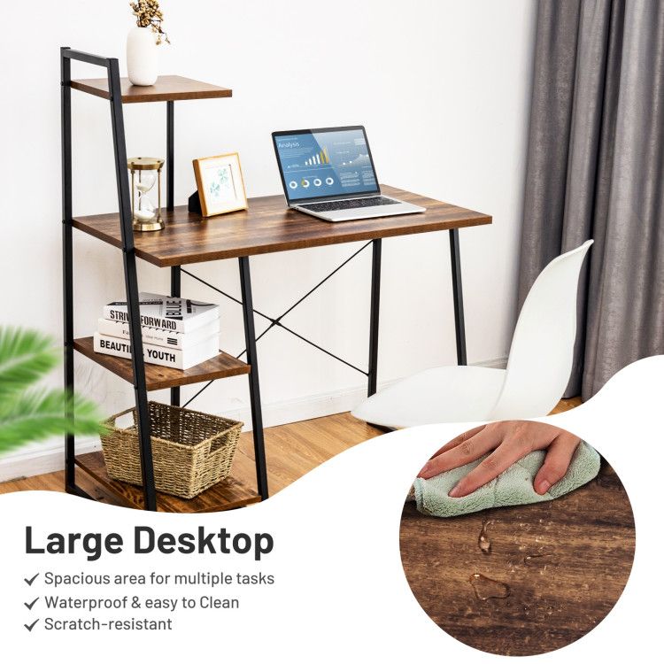 Compact Computer Desk Workstation with 4 Tier Shelves for Home and Office