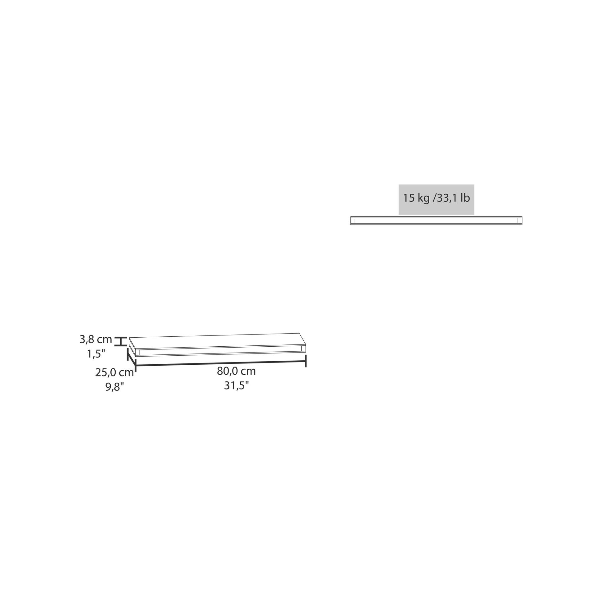 Compact dimensions: 1.50" H x 31.50" W x 9.80" D, ideal for maximizing wall space.