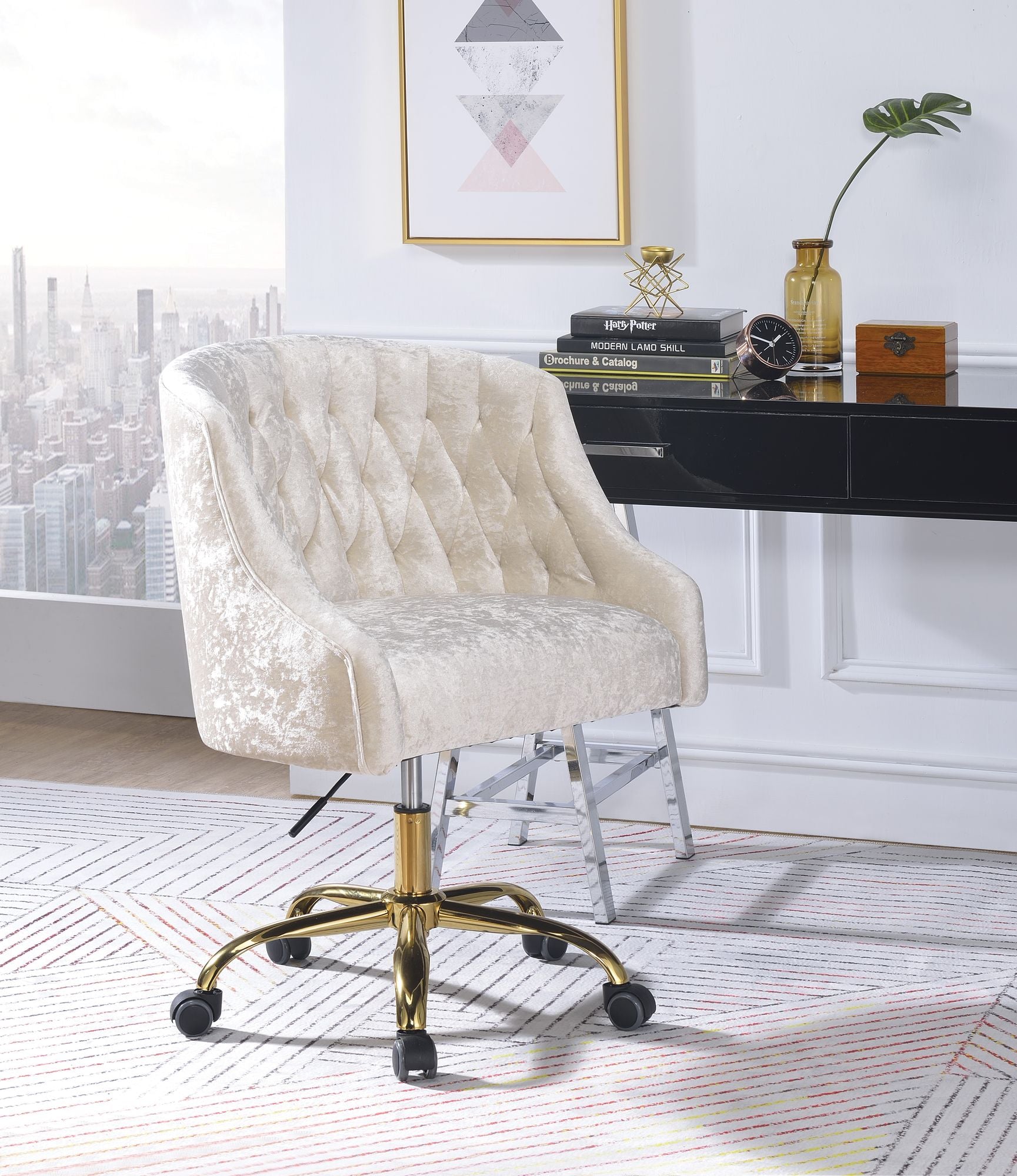 Levian Vintage Cream Velvet & Gold Finish Office Chair