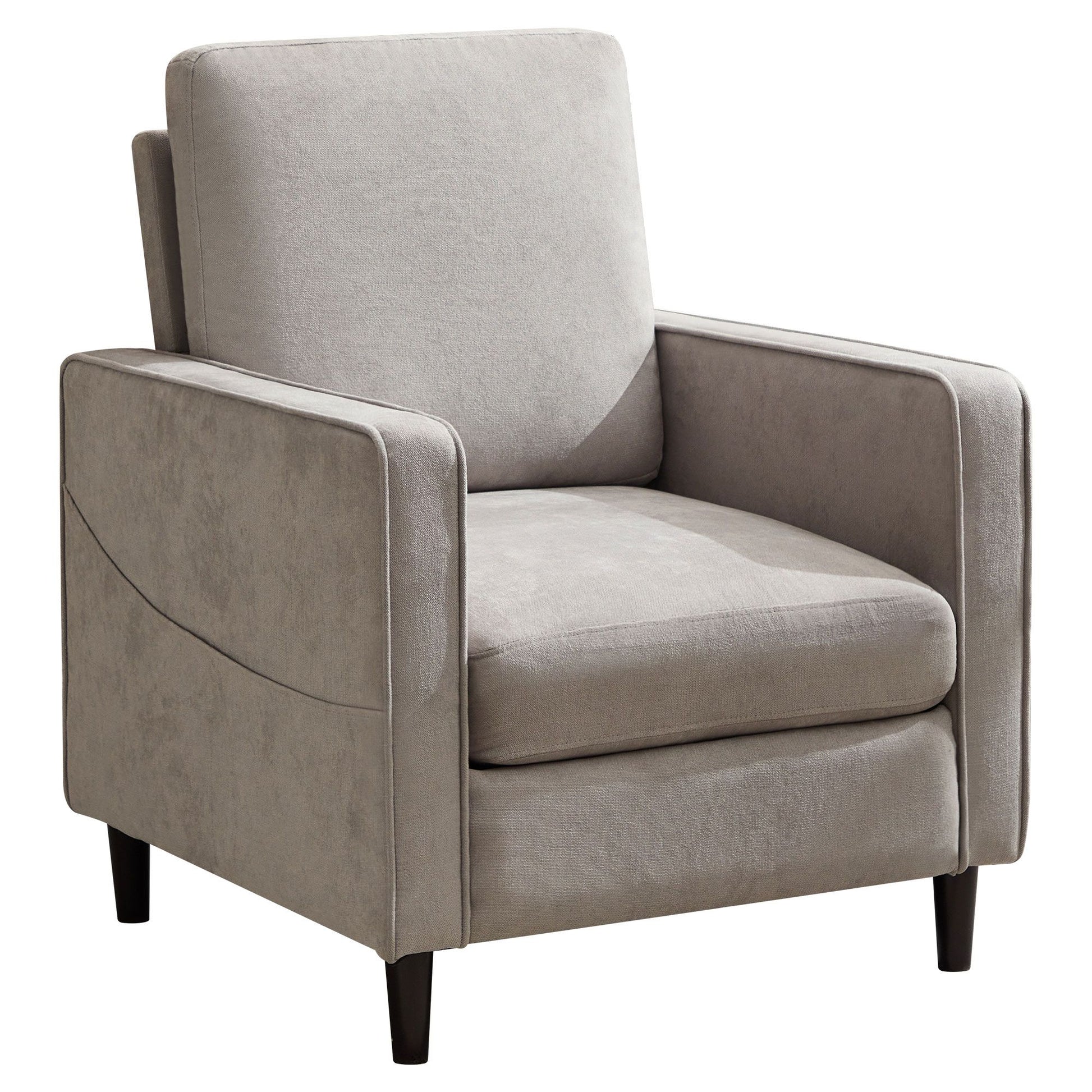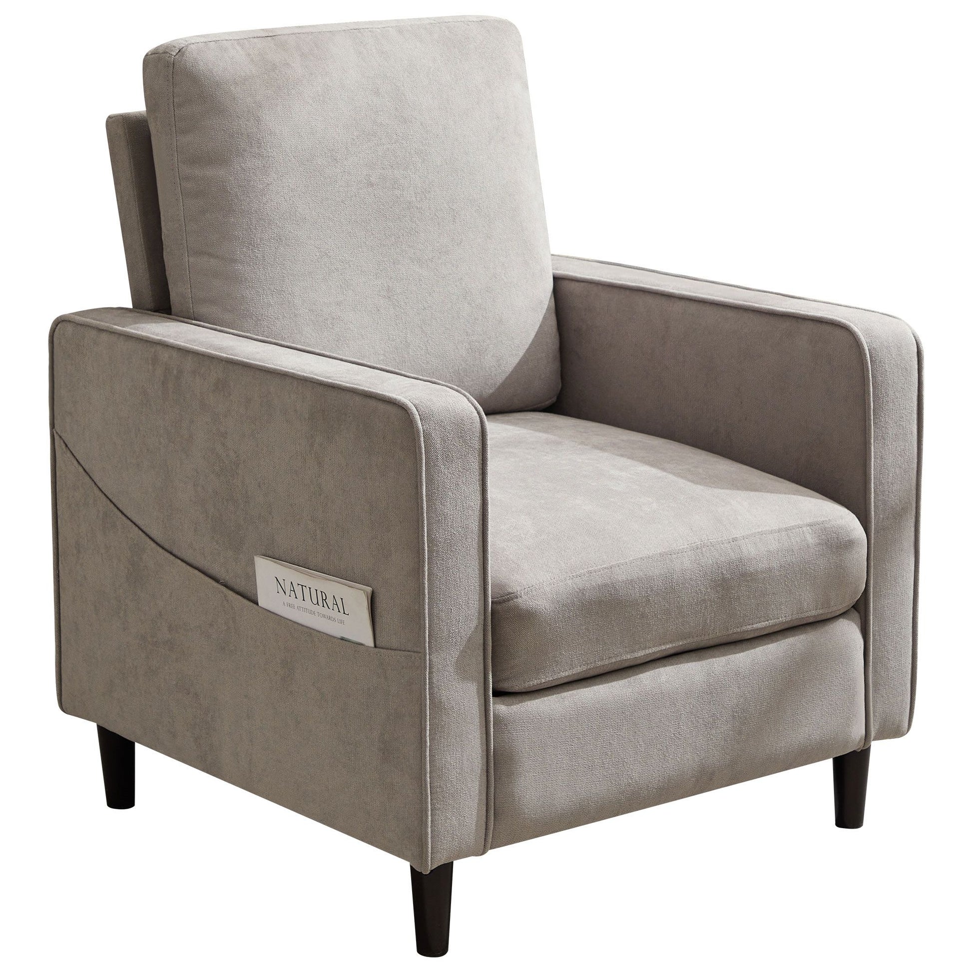 Mid-Century Accent Chair ,Modern Linen Fabric Armchair for Living Room,Double side pockets,, comfortable and padded reading feature sofa chair, suitable for bedrooms, living rooms, and offices