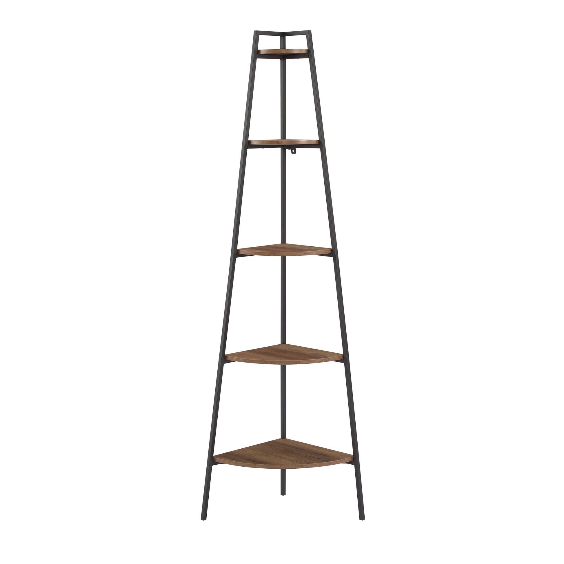 Modern Industrial Metal and Wood Corner Bookshelf – Rustic Oak