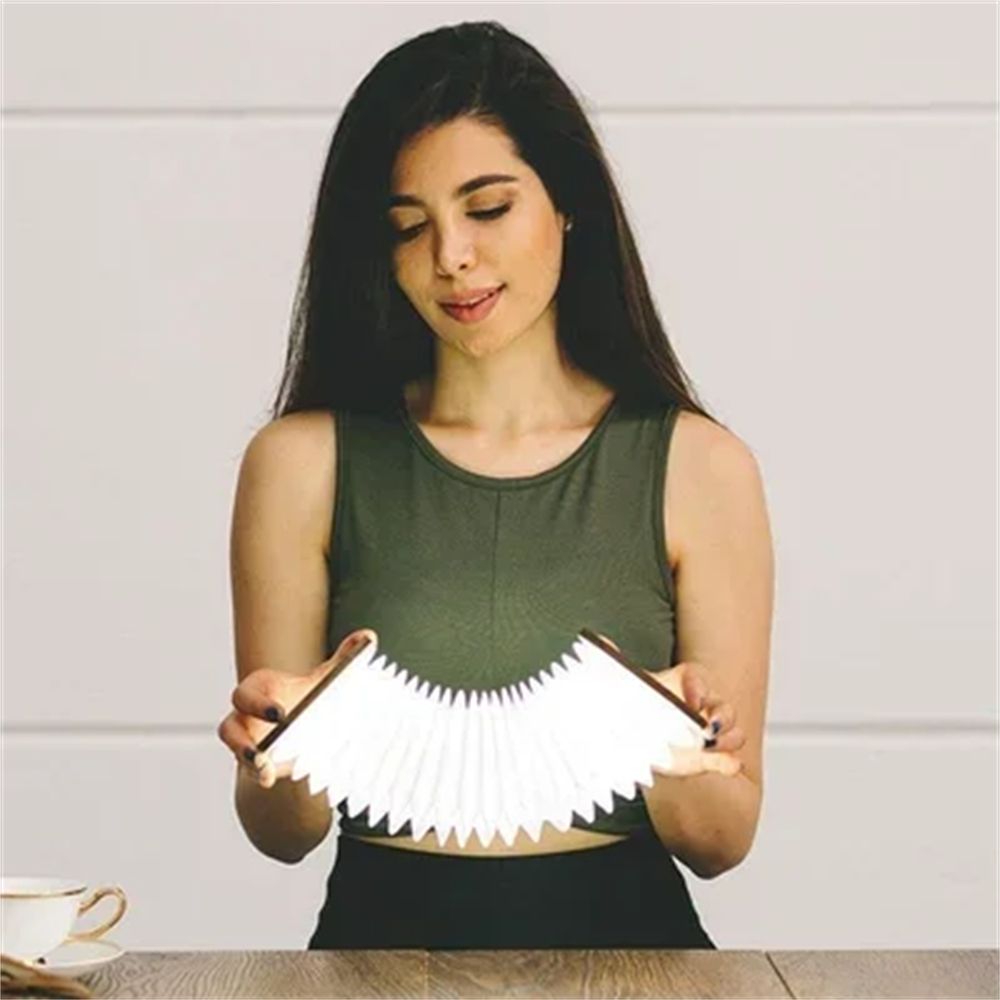 Smart Folding Light LED Rechargeable Nightlight, Wooden Book lamp with Magnetic Strap