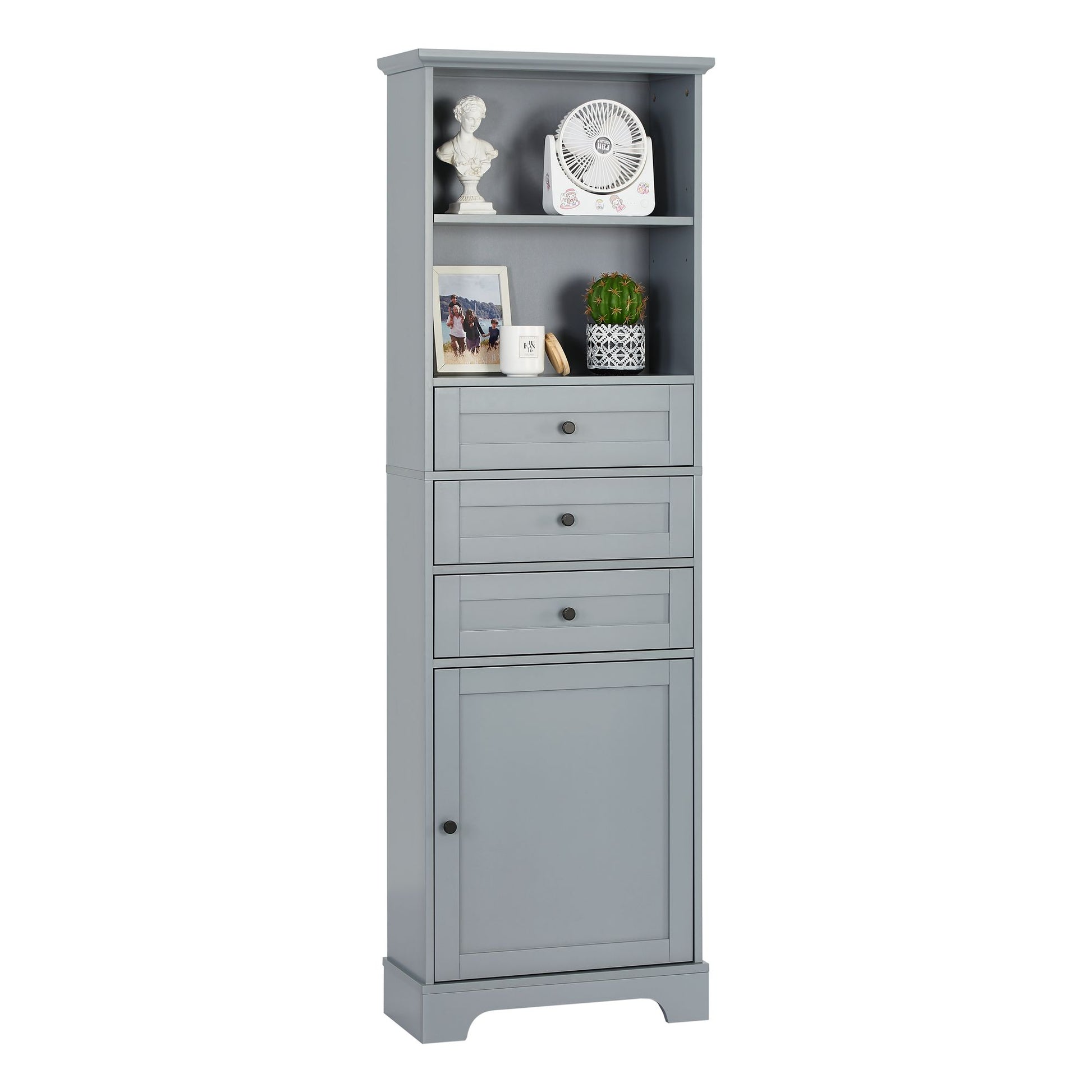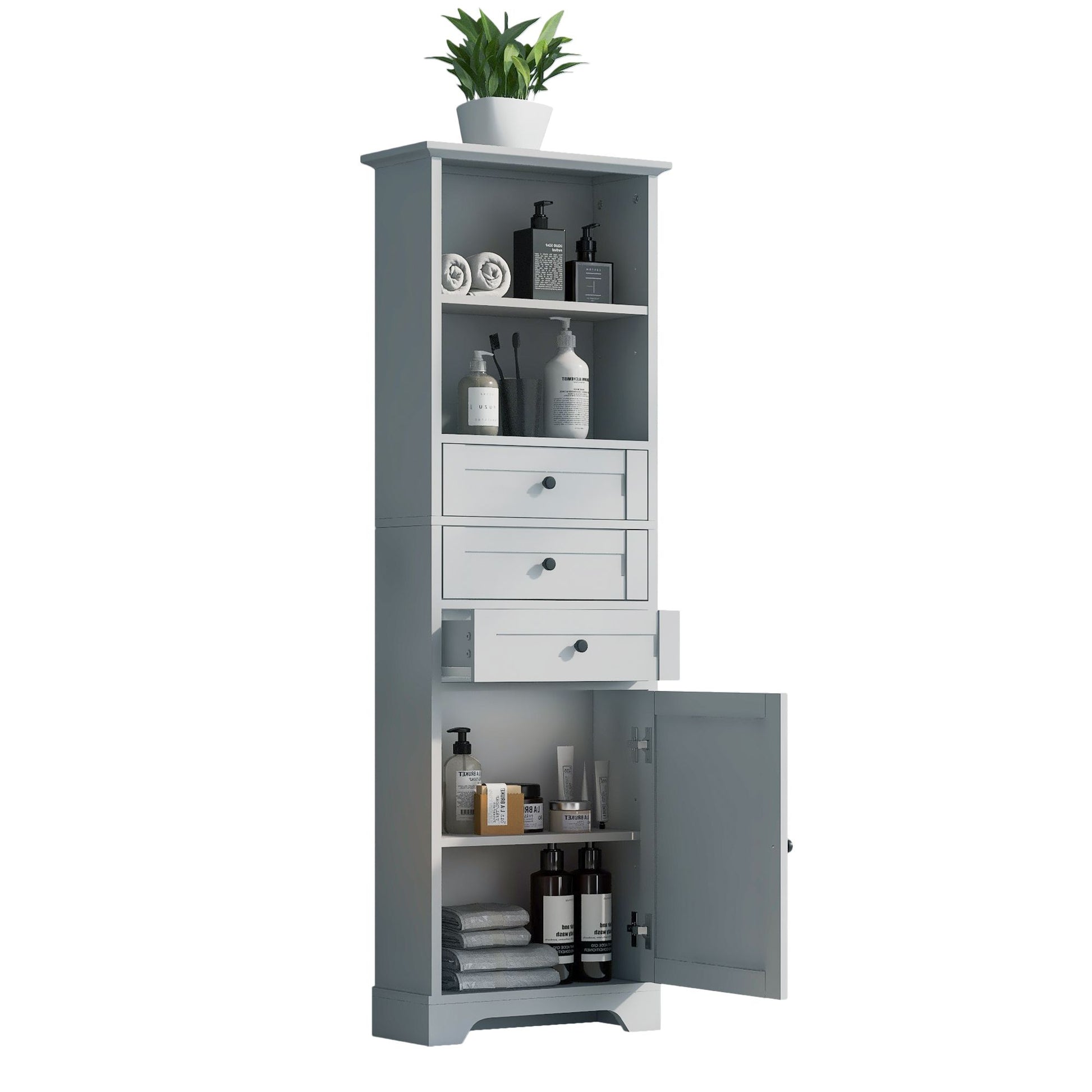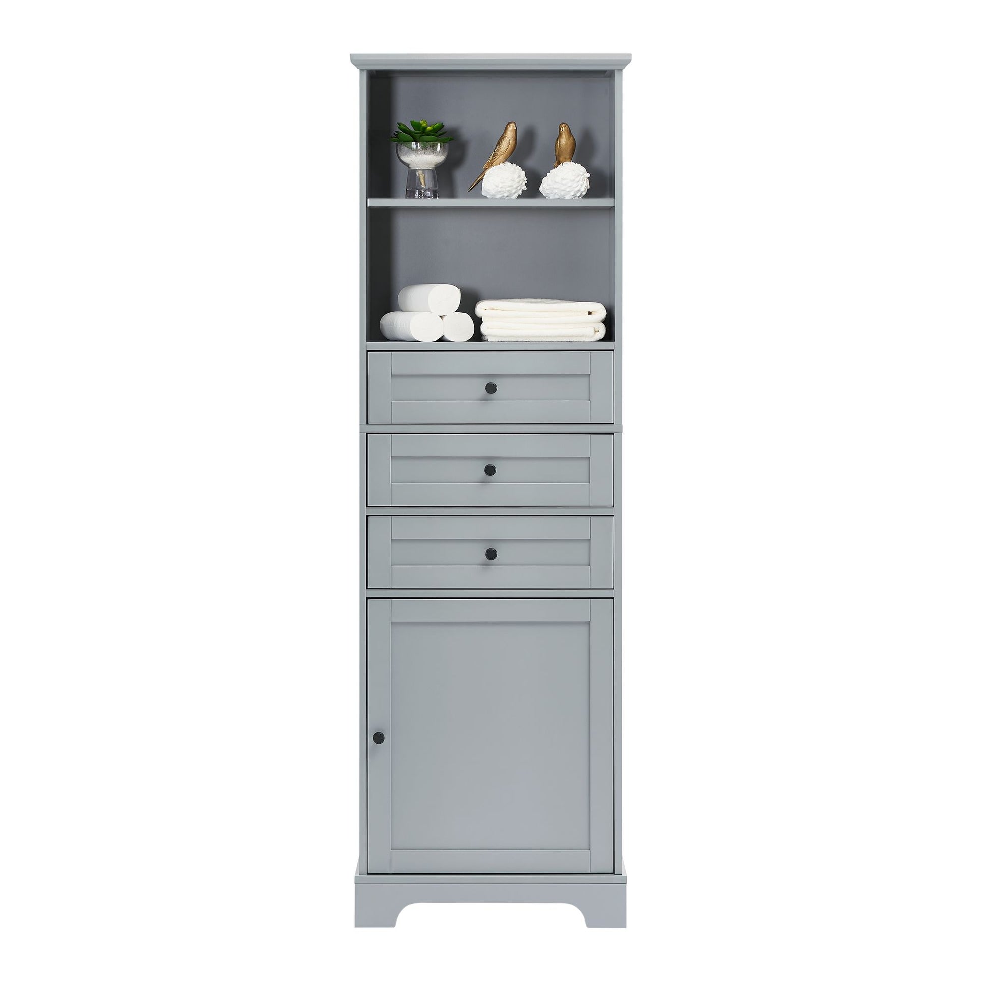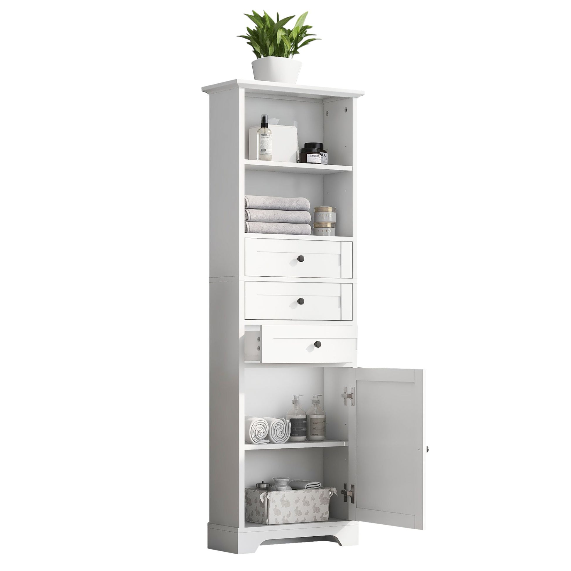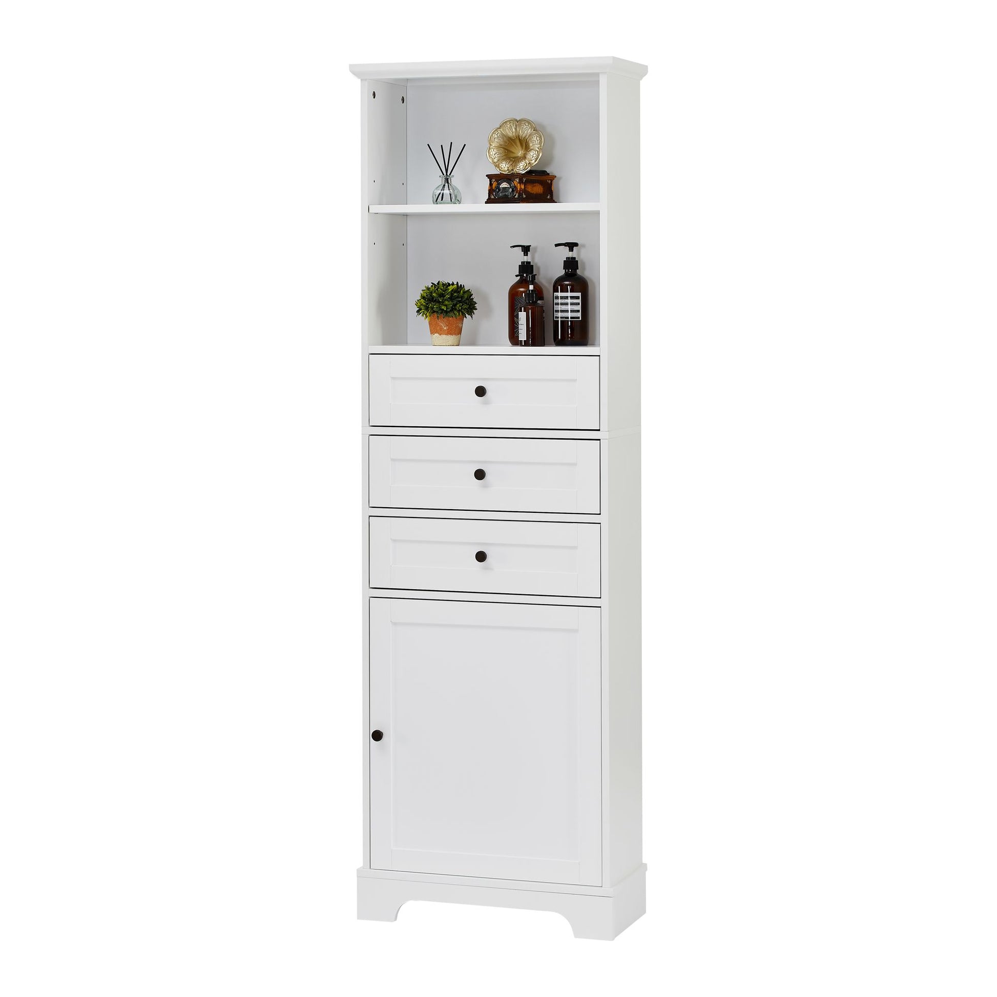 Tall Storage Cabinet with 3 Drawers and Adjustable Shelves for Bathroom; Kitchen and Living Room; MDF Board with Painted Finish