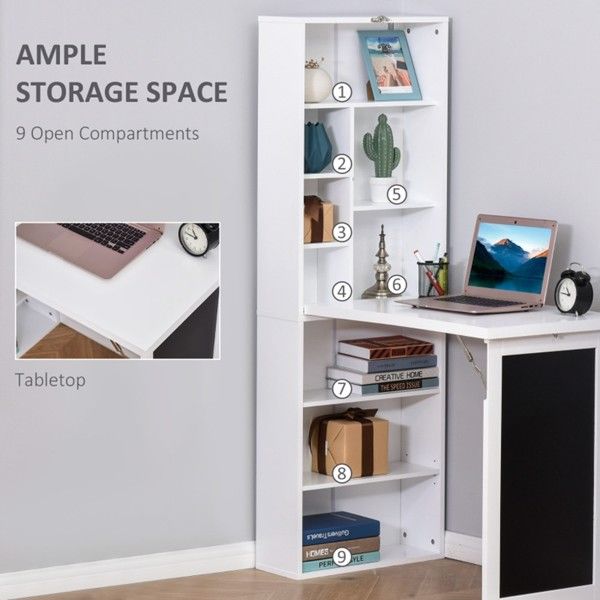 - - 2-in-1 design combines a folding desk with an open storage shelf, providing ample storage space for books and stationery essentials. - Made of particleboard and solid metal hardware for stability and easy cleaning